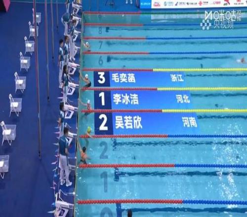 11月12日,全运会游泳女子1500米自由泳决赛,河北队李冰洁15分55秒40夺得金牌,河南队吴若欣16分00秒61获得银牌,浙江选手毛奕菡16分04秒92获得铜牌。