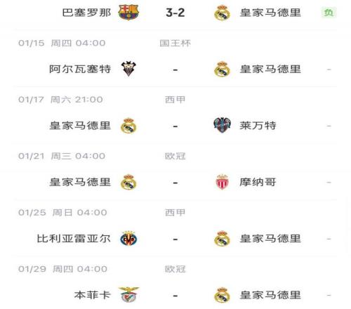 皇马未来赛程:
